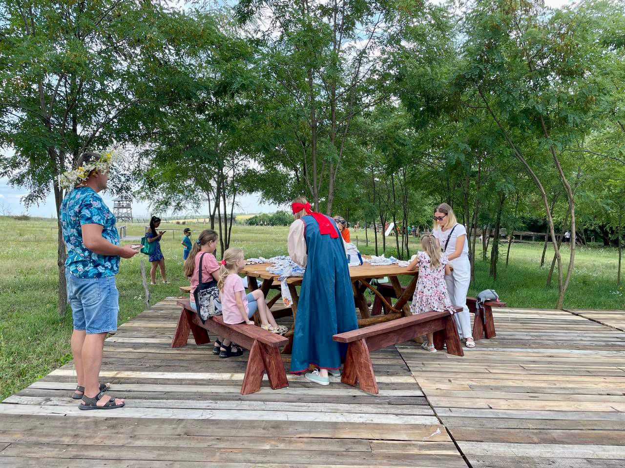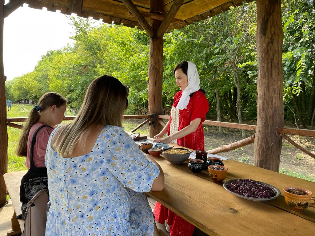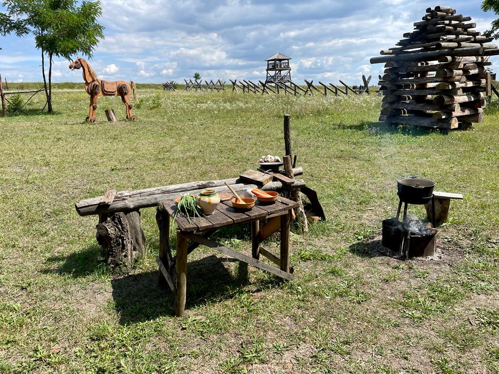 Стрельцы, девушки в красных сарафанах и сорочках с покрытой белым платком головой, деревяные сооружения, полевая кухня, акации, пшеничное поле и чистое небо над головой. Исторический парк «Белгородская черта» показывает посетителям, каким был быт у предков, живших на границах тогдашнего Русского царства.